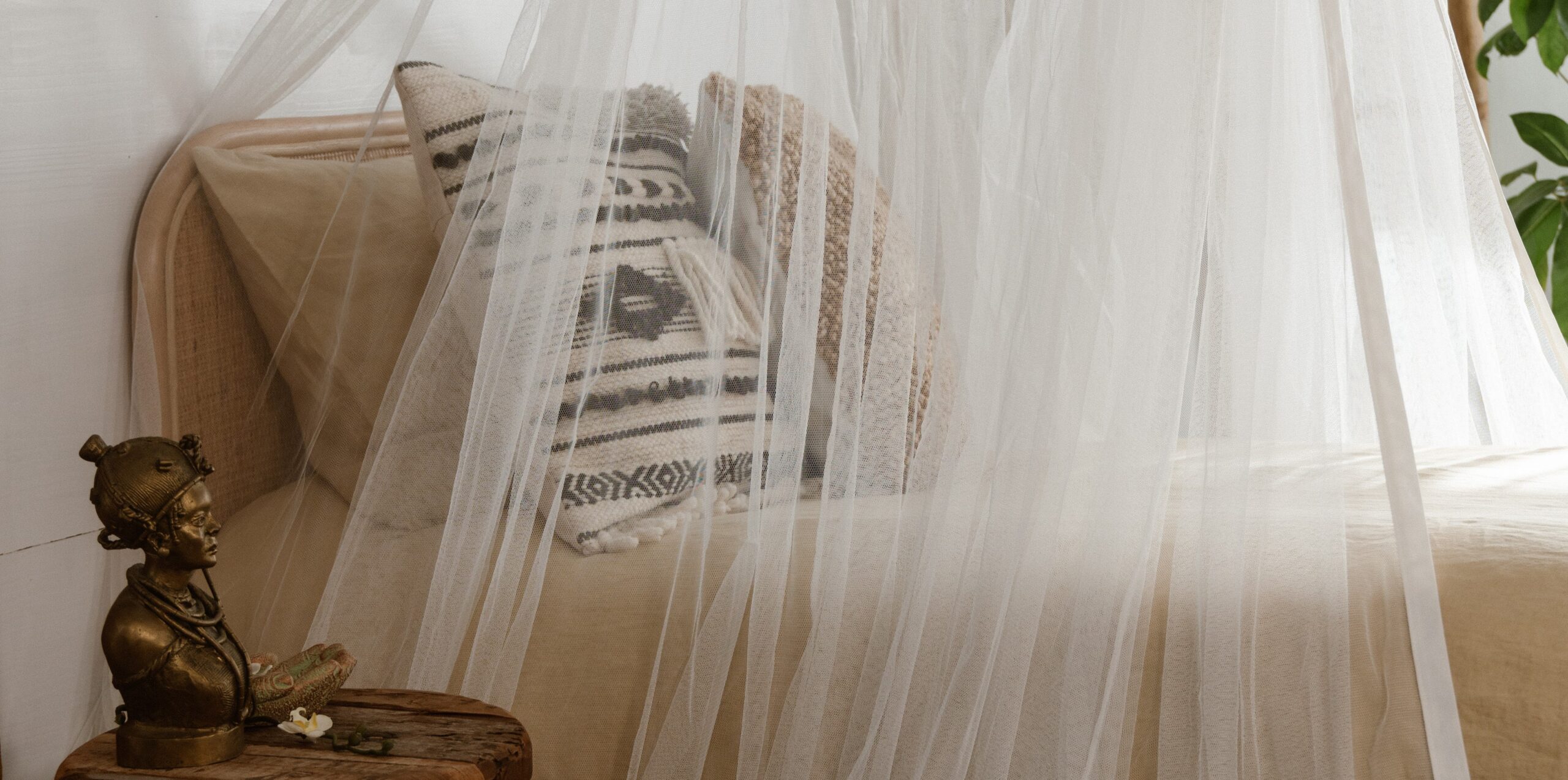 Looking for a white mosquito net that keeps your bedroom bright and calm while keeping mosquitoes out? Our white mosquito nets fit neatly around the bed, feel comfortable, and are available in cotton or polyester. Both materials are breathable. The mesh density ensures effective protection: cotton about 1000 holes per inch (well above WHO guidelines), polyester 256 holes per inch (WHO standard). In practice: a fresh look, a beautifully hanging net, and nights without buzzing.